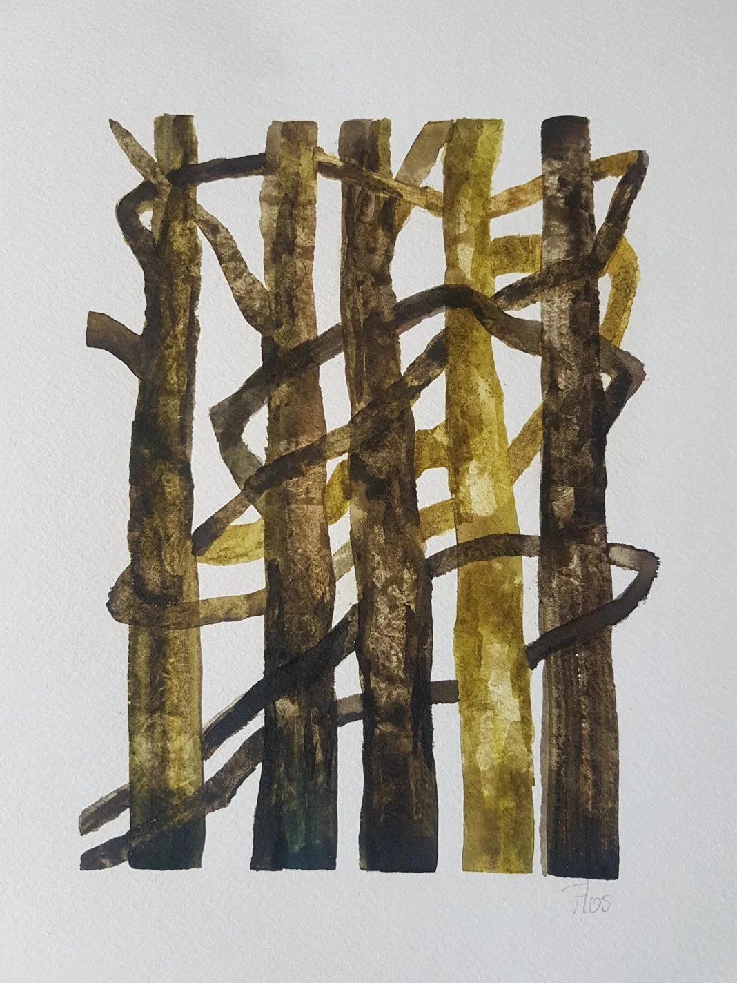 2021 serie: 'Houtkap -Stapelingen' 6 (30x24cm) aquarelverf op 300 gr aquarelpapier
