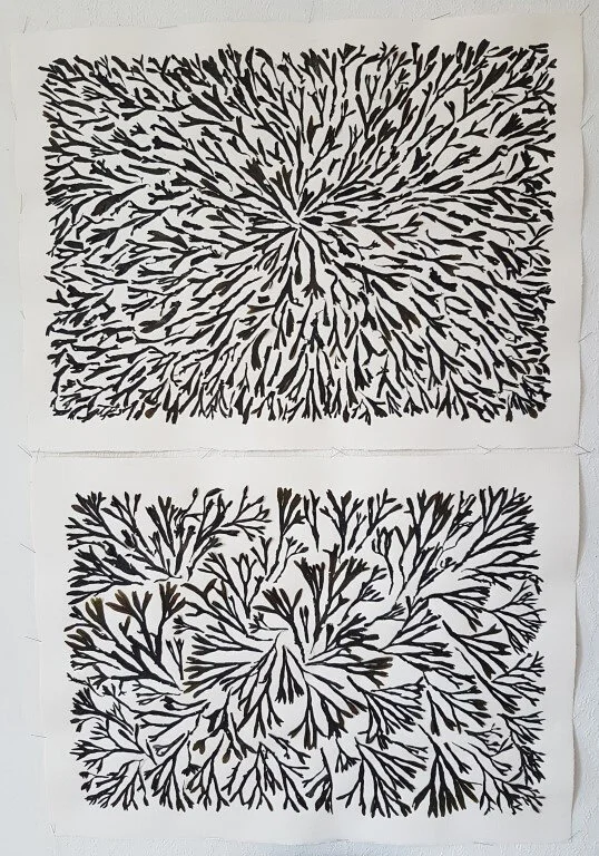 019 Serie 'Imperfect'  - (56x76 cm) aangespoeld blaaswier op 300 gr aquarelpapier